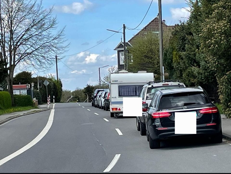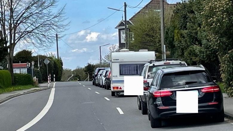 Parksituation in der Ortschaft Orth entlang der L 427 in Fahrtrichtung Solingen